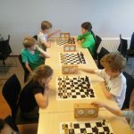 Natuurlijk was er ook de tekenwedstrijd wat weer prachtige creaties opleverde. Het buitenschaakspel werd weer volop gebruikt en waar dan ook de nodige schaakvriendschappen zijn gesloten en tot slot hadden we weer de Beer die in een schaakcafé sfeer de jeugd tussen de partijen door schakend bezig wist te houden.
