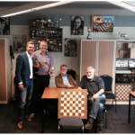 Op de foto zien we o.a. de gevulde prijzenkast. En we zien de vier gesigneerde portretten van links naar rechts van achtereenvolgend Anatoly Karpov (heel wat jonger en slanker dan te zien tijdens het laatste TATA Steel toernooi), Bobby Fischer, Ulf Andersson en Bent Larsen.