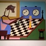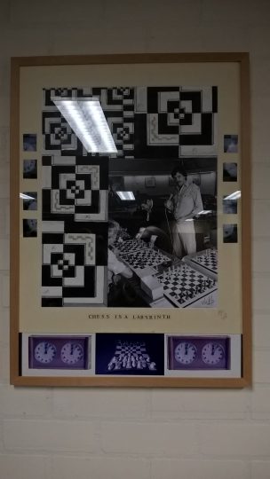De collage onder te titel “Chess is a labyrint” toont Hans Böhm tijdens een simultaanseance in het kader van het TV-programma Man en Paard. Helaas is de collage ingelijst met spiegelende glasplaat waarin de plafondverlichting spiegelt maar te zien is dat de klokken en het schaakbord en stukken heel suggestief worden weergeven. Wellicht dat men zoiets gaat zien na enkele uren zwoegen aan het schaakbord.