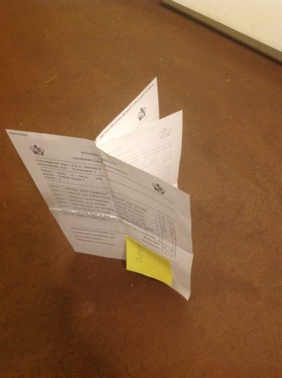 C. Vervolgens plakt of lijmt men de sets aan elkaar zodat men twee exemplaren krijgt als in de onderstaande foto links. De rechterfoto toont het formulier schuin van boven en enigszins opengevouwen zodat u een indruk krijgt hoe het in elkaar steekt.