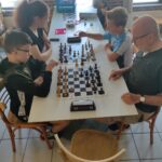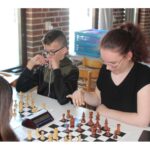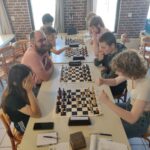 De volgende morgen om 8.30u aan het ontbijt waarna er het volgende schaakonderdeel op het programma stond, het doorgeefschaak. Na 7 ronden kwamen de koppels Romayn-Sofie en Pieter-Vincent in de finale tegenover elkaar. Het koppel Romayn-Sofie waren het beste bestand tegen de druk en wisten dit onderdeel ongeslagen af te sluiten in mochten de 1e prijs in ontvangst nemen.