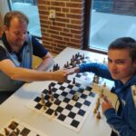 Direct daarna van start met het eerste schaaktoernooi in de vorm van handicap schaak. Dat betekend bij iedere 100 punten ratingverschil 1 punt bij de tegenstander bij de beginopstelling van het bord. Dus bedenk het verschil maar bij een begeleider met een rating van 2360 en een beginnende jeugdschaker. Na 7 ronden met een doorschuifsysteem werd dit eerste toernooi gewonnen door Barrie Romijn, na winst op Pieter in de finale.
